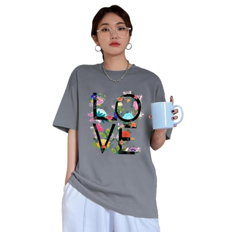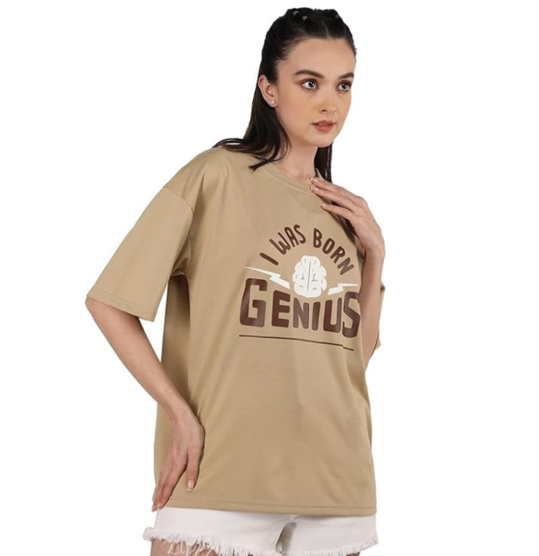 CHKOKKO Women Cotton Oversized Round Neck Printed Tshirt