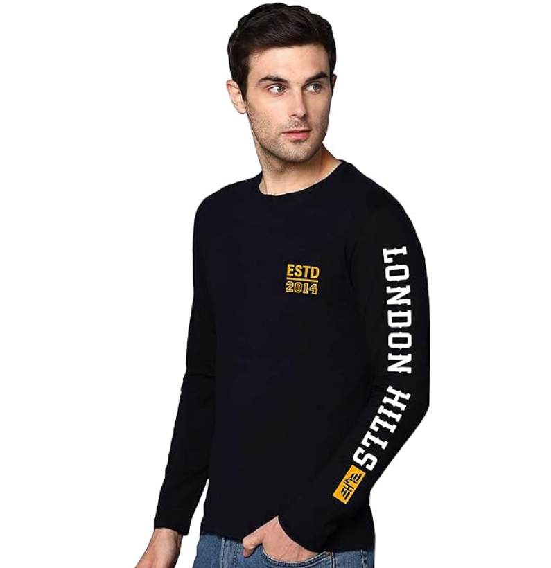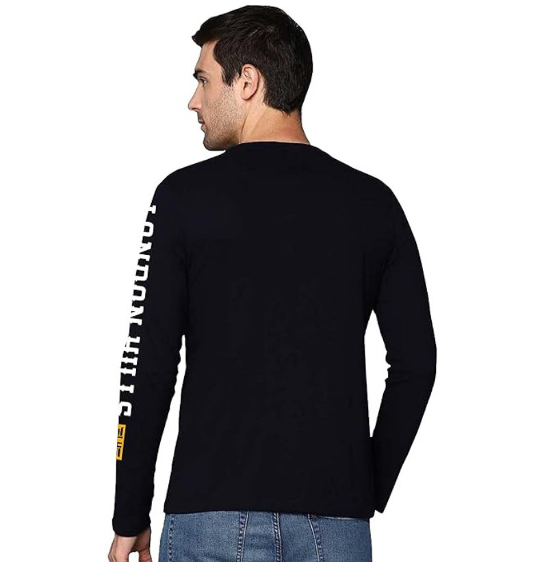 London Hills Cotton Printed Men Round Neck Full Sleeve Black Regular Fit T-Shirt