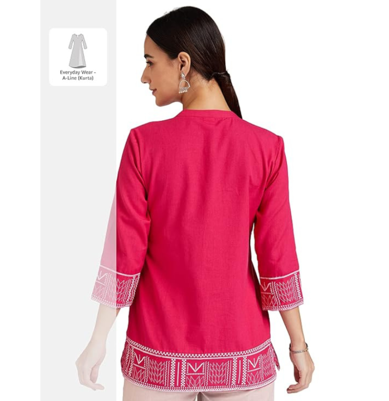 Amazon Brand – Myx Women Cotton Printed A-line Short Kurti (Available in Plus Sizes)
