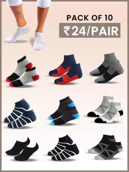 hicode Cotton Men’s Textured Multicolor Ankle Length Socks ( Pack of 10 )