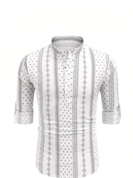 Highlights LAXBON Color: Brown Fabric:Cotton Blend Fit:Regular Fit Pattern:Printed Neck Shape:Mandarin Collar Pattern or Print Type:Geometric Product Length:Knee Length Shop
