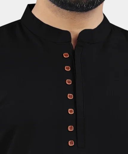 Highlights Ethnic Trendz Color: Black Fabric:Cotton Blend Fit:Regular Fit Pattern:Plain Neck Shape:Mandarin Collar Number of Pocket:No Pocket Pattern or Print