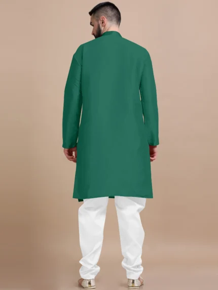 Highlights Ethnic Trendz Color: Green Fabric:Cotton Blend Fit:Regular Fit Pattern:Plain Neck Shape:Mandarin Collar Number of Pocket:No Pocket Pattern or Print
