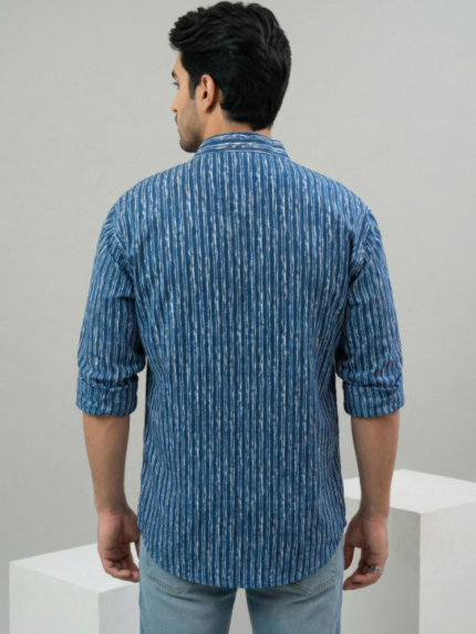 Product Details Colour: Blue Floral Printed Mandarin Collar Long, Roll-Up Sleeves Straight shape with Regular style Thread Work detail Above