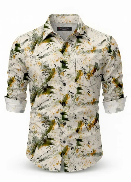SHREE VASTRA HOUSE 100% Cotton Regular Fit Printed Full Sleeves Men’s Casual Shirt – Gold ( Pack of 1 )