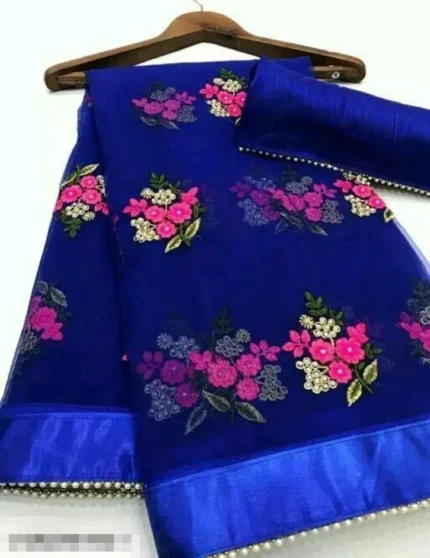 Highlights HIFLI Fabric:Net Pattern:Embroidered Pattern or Print Type:Thread Work Set Contents:With Unstitched Blouse Piece Blouse Fabric:Bangalore Silk Blouse Color:Multicolor Saree