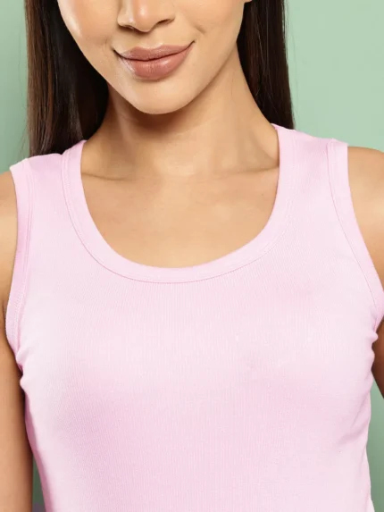 Highlights Leading Lady Color: Pink Fabric:Cotton Type:Tank Top Sleeves Length:Sleeveless Neck Shape:Round Neck Sleeves Type:Sleeveless Pattern or Print Type:Solid Fit:Regular
