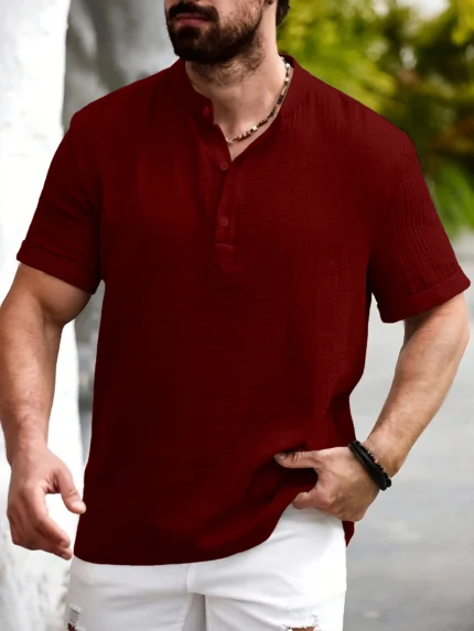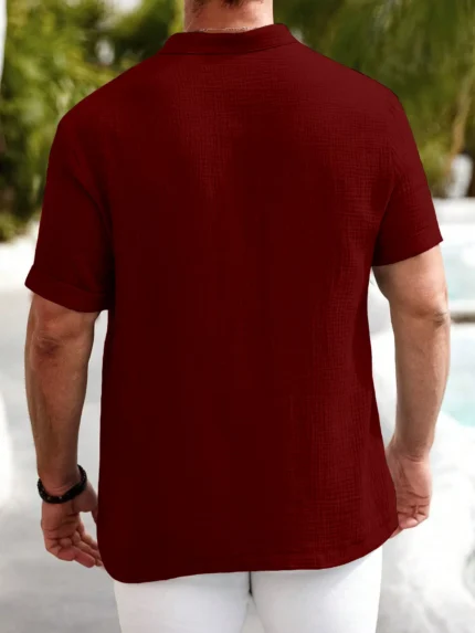 Highlights WEBRIC Color: Maroon Fabric:Cotton Blend Fit:Regular Fit Pattern:Self Design Neck Shape:Mandarin Collar Number of Pocket:No Pocket Pattern or Print