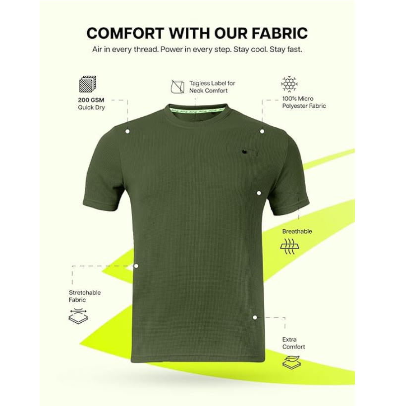 AWG ALL WEATHER GEAR Men Solid Waffle Crew Neck Tshirt | Waffle Knit T-Shirt | Men’s T-Shirt | Tees for Man | Textured Half Sleeve T-Shirt’s | Tshirt for Men Stylish