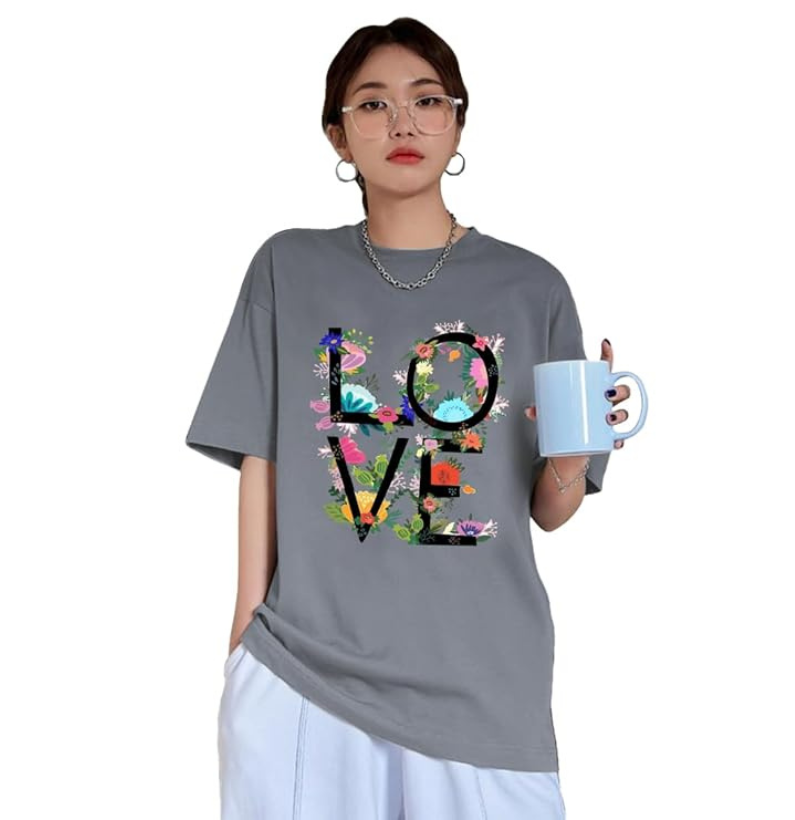 CHKOKKO Oversized Round Neck Drop Shoulder Printed Polyester Half Sleeves T-Shirt for Women