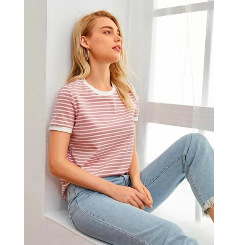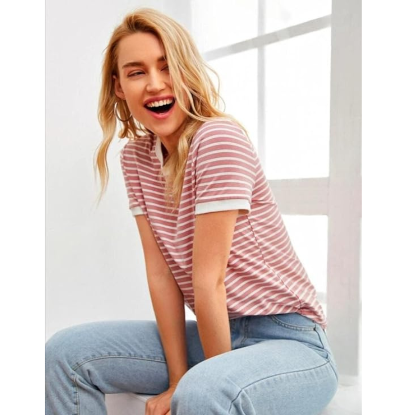 Dream Beauty Fashion Women’s Half Sleeve Round Neck Printed Fitted Tee -23″ Inches (Heena-Top)