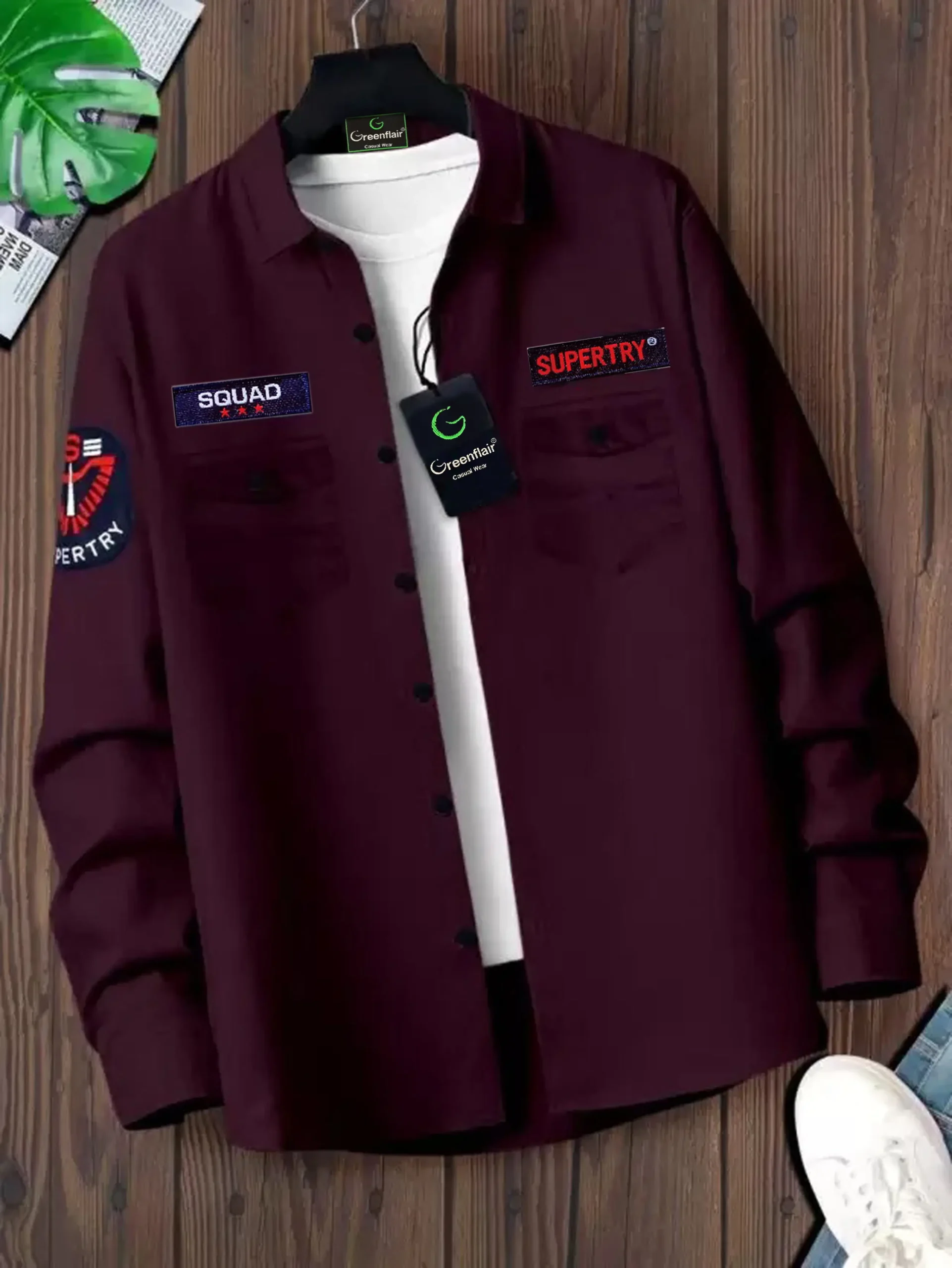 Greenflair Cotton Blend Regular Fit Applique Full Sleeves Men’s Casual Shirt – Maroon ( Pack of 1 )
