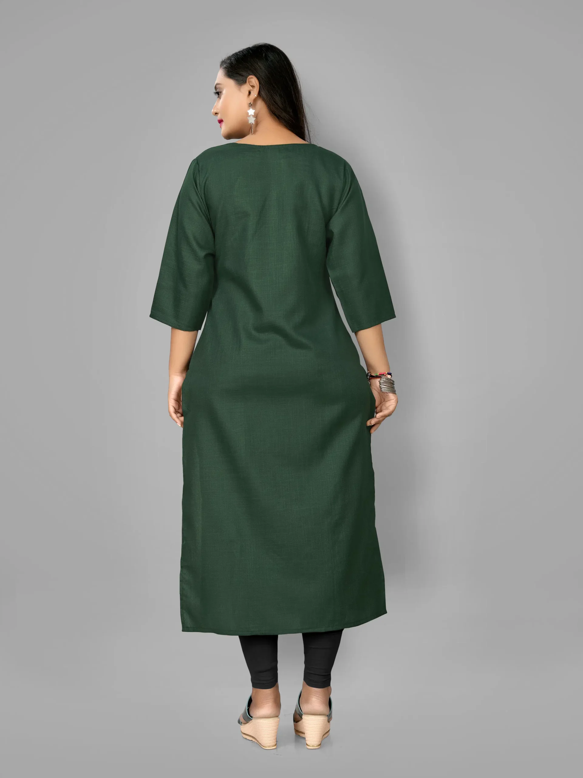 Hetsa Pack of 1 Cotton Blend Embroidered A-line Women’s Kurti – ( Dark Green )