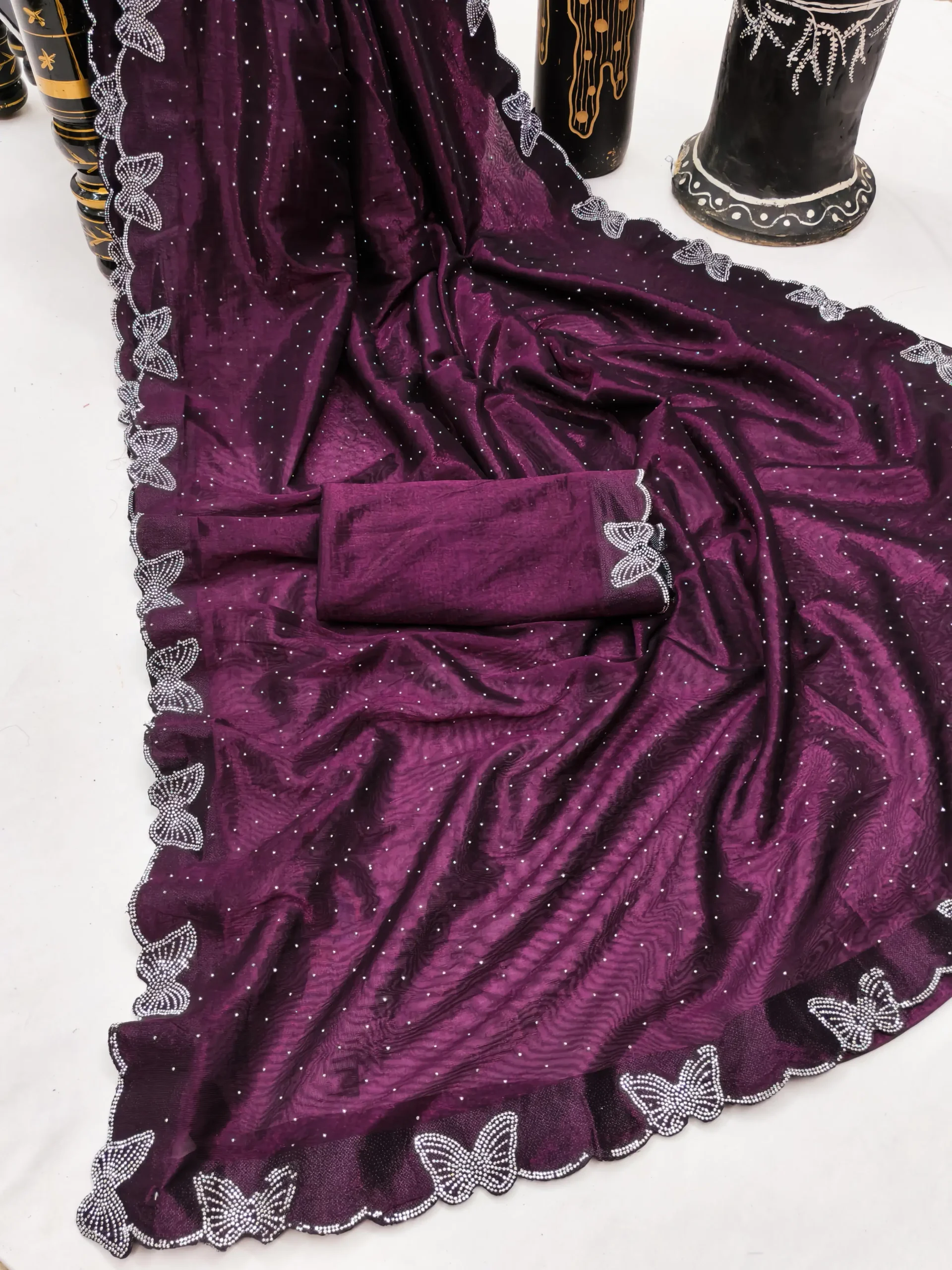Butterfly Diamond Lace Work Saree With Unstitched Blouse PieceTerms & Conditions