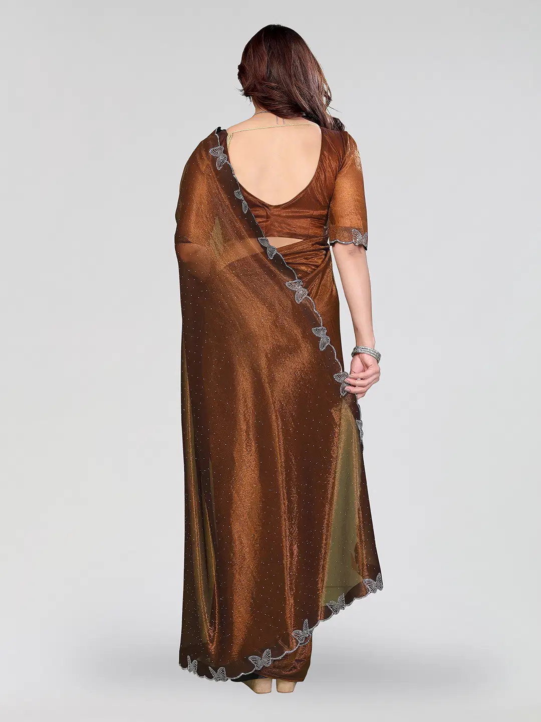 Butterfly Diamond Lace Work Saree With Unstitched Blouse Piece