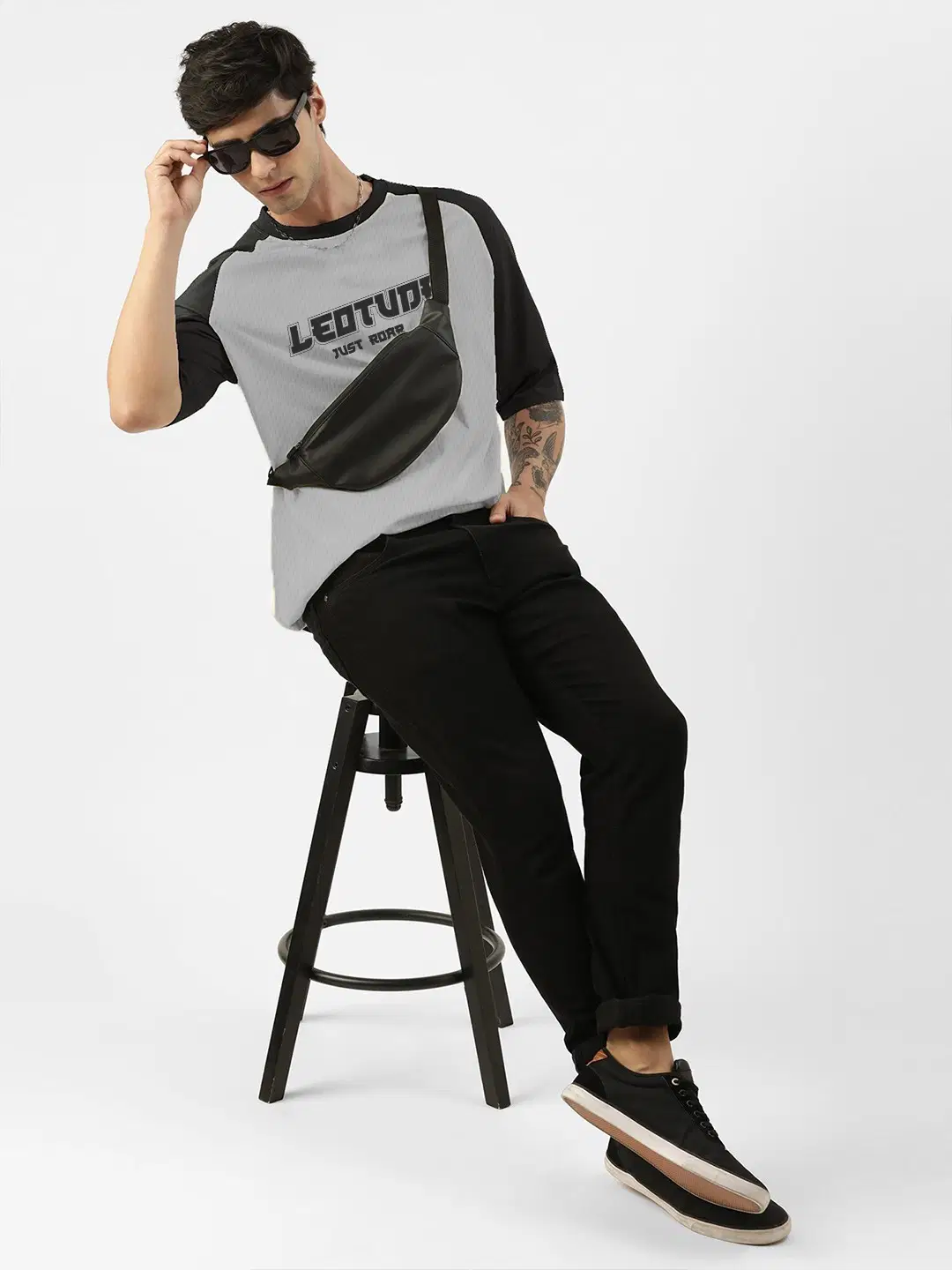 Leotude Men Cotton Blend Oversized Fit Printed T-Shirt ( Grey )