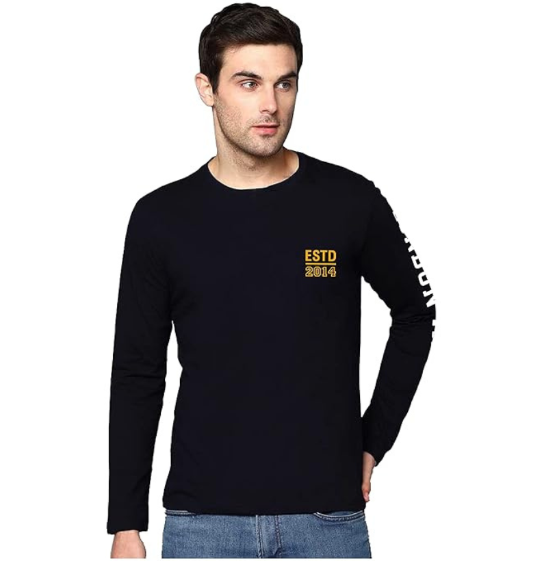 London Hills Cotton Printed Men Round Neck Full Sleeve Black Regular Fit T-Shirt