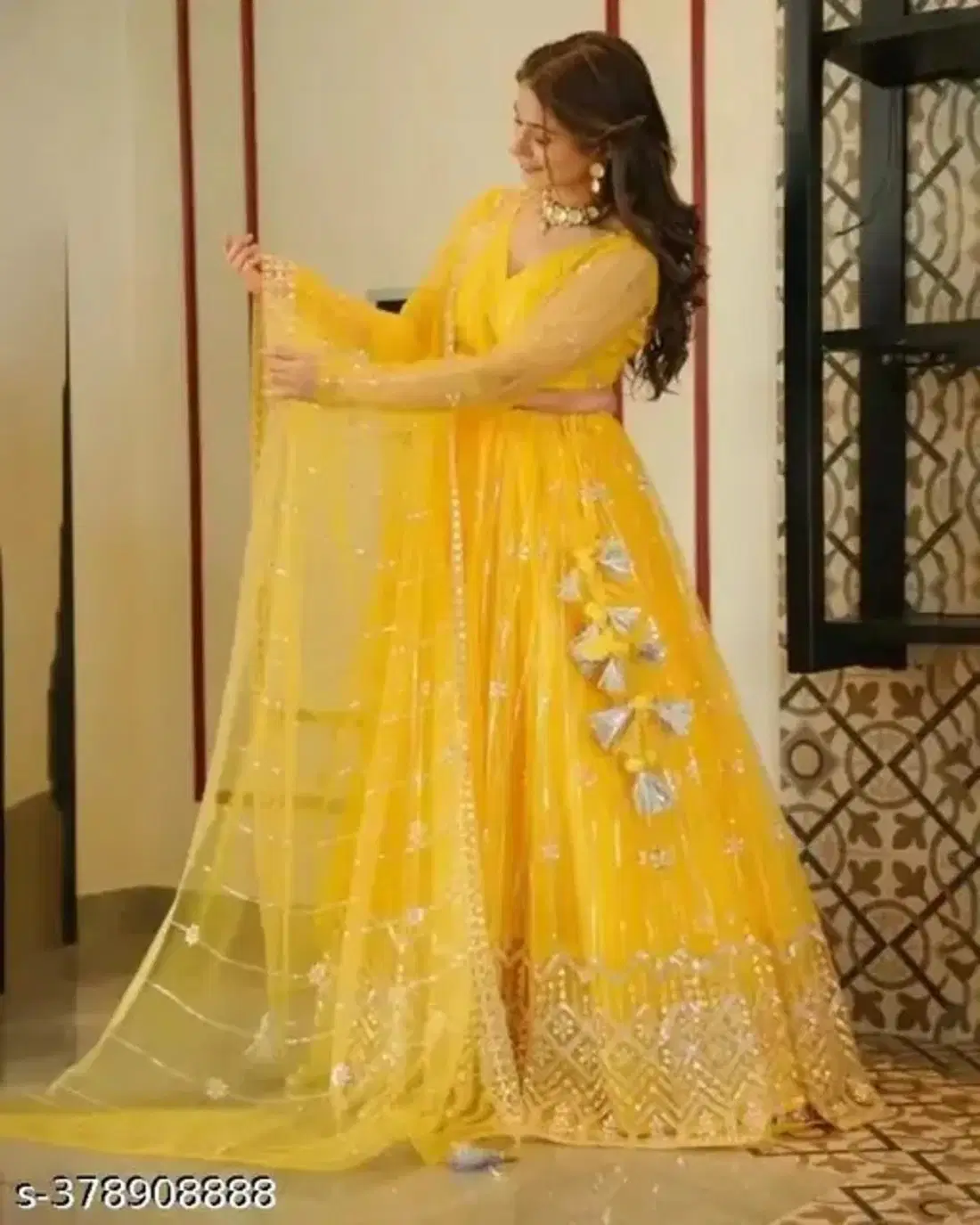 Sahaj Creation Yellow Net Chaniya Choli Semi Stitched Lehenga Single