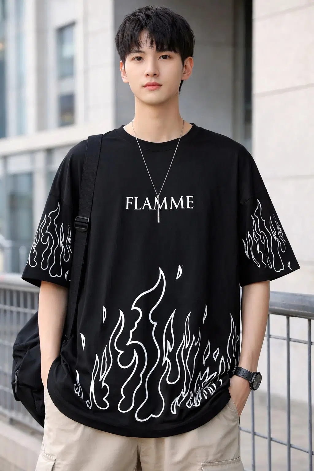 LEOTUDE Men Half Sleeve Round Neck Graphic Font Printed Cottonblend Oversized Tshirts (Colour: Orange)