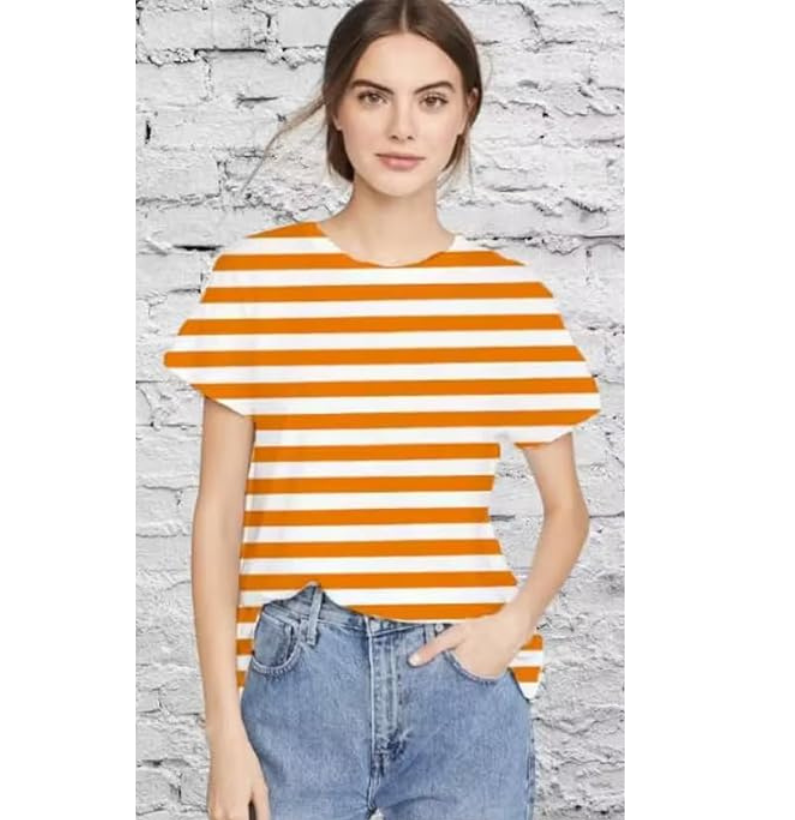 Topify Oversize Spandex Funkky Printed T-Shirt for Women Casual Wear with Orange line Print Color Orange