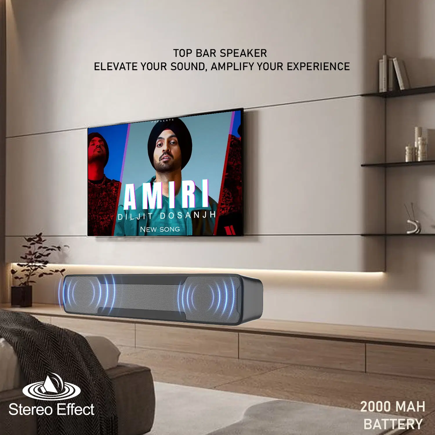 V WORTEX TOP BAR 25 W Bluetooth Speaker Bluetooth v5.0 with USB,SD card Slot,Aux Playback Time 5 hrs Black