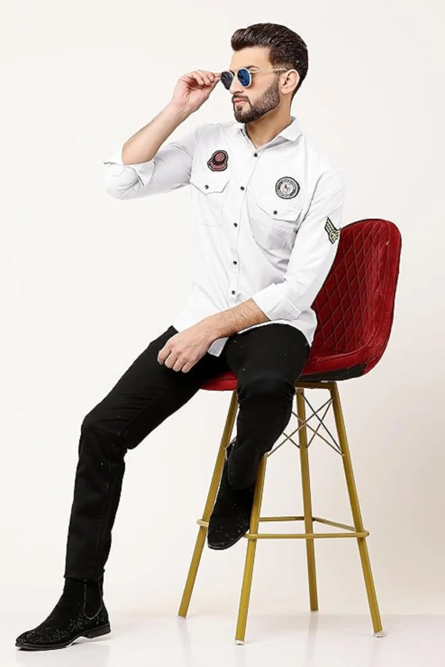 VENIZ WESTERN WEAR Cotton Blend Regular Fit Applique Full Sleeves Men’s Casual Shirt – White ( Pack of 1 )