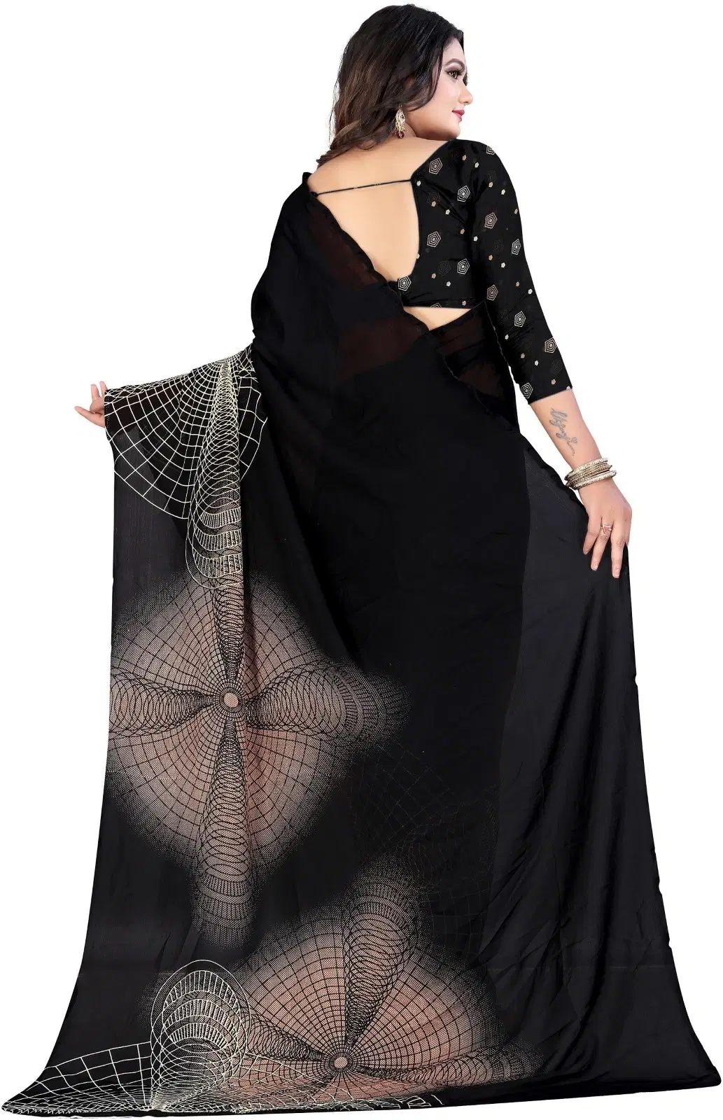 Vibhagyaa Georgette Printed Saree With Unstitched Blouse Piece ( Multicolor )